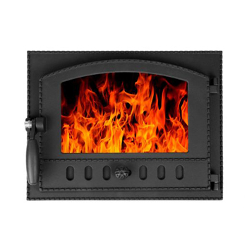 Дверца герметичная, по контуру имеется уплотнительный огнеупорный шнур. Имеет регулировку подачи воздуха в топку.